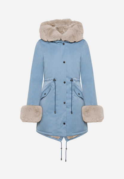Cappotto da donna con pelliccia Chiusura con zip e bottoni Due tasche anteriori con bottone Cordoncino con coulisse in vita Cappuccio con pelliccia Composizione: 100% Poliestere Pesantezza: ❄ ❄ ❄