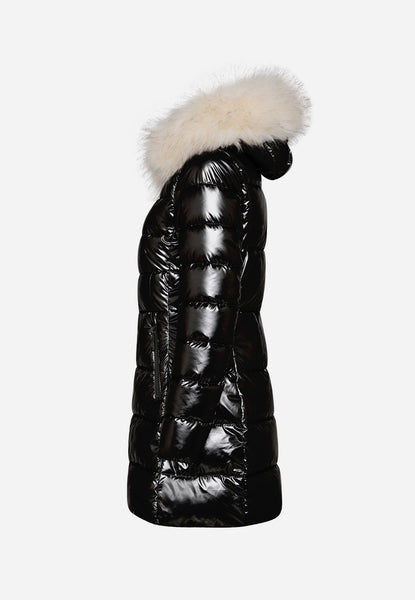 Piumino lungo da donna Chiusura con zip a doppio cursore Due tasche anteriori con zip Cappuccio rimovibile con pelliccia Composizione: 100% Poliestere Pesantezza: ❄ ❄ ❄