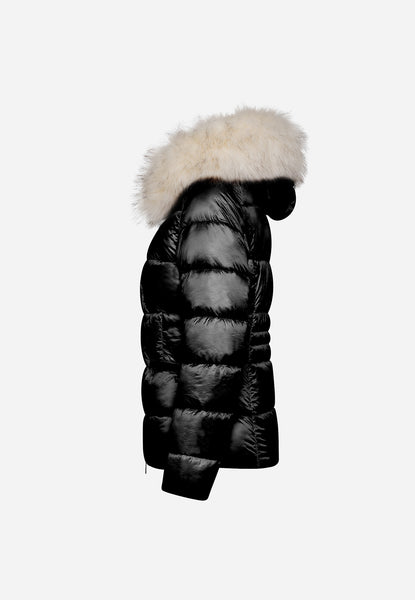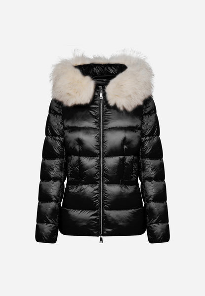 Piumino da donna 200gr Chiusura con zip a doppio cursore Due tasche anteriori con zip Cappuccio con pelliccia Composizione esterna: 100% Nylon Composizione interna: 100% Poliestere Pesantezza: ❄ ❄ ❄