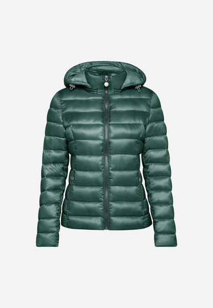 Piumino da donna 200grChiusura con zipDue tasche anteriori con zipCappuccio rimovibile con cernieraComposizione: 100% PoliesterePesantezza: ❄ ❄ ❄