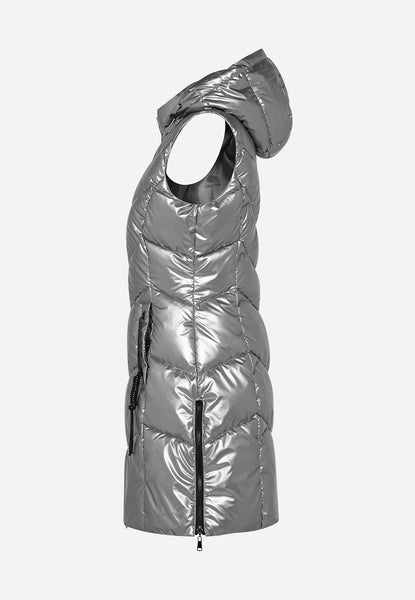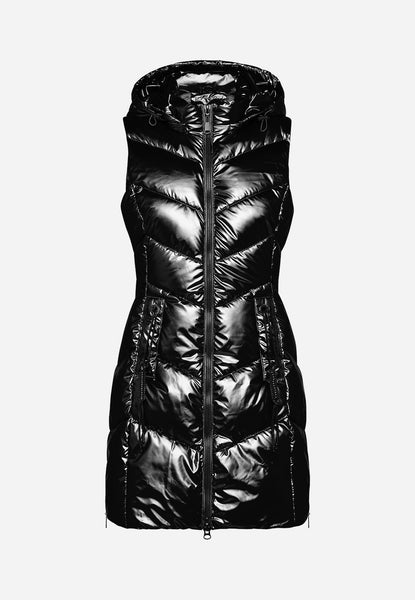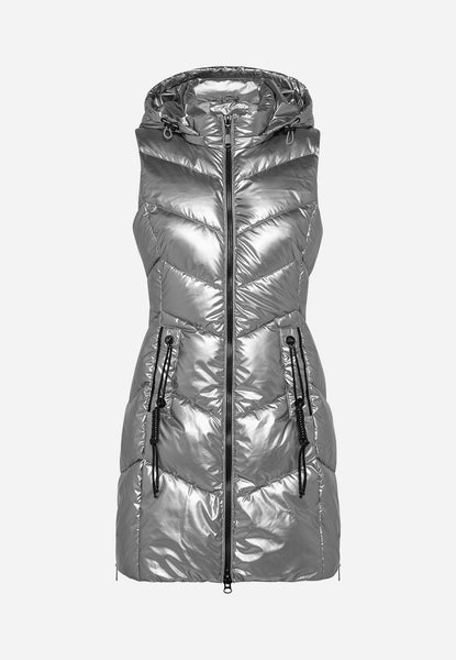 Piumino smanicato da donna Chiusura con zip a doppio cursore Due tasche anteriori con bottone Cappuccio rimovibile con zip Zip laterale sui fianchi Composizione: 100% Poliestere Pesantezza: ❄ ❄ ❄